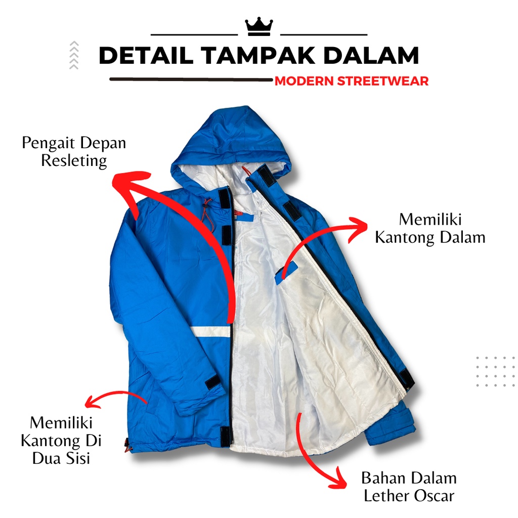 * Desain jaketnya langka beda dari yang lain (LIMITED EDITION) Hanya sekali keluar saja * Bahan jaket menggunakan taslan premium dan parasut despo nyaman ketika anda pakai tidak mudah gerah * Bahan dalam menggunakan bilabong halus ketika berbenturan dengan kulit anda * Jaket memiliki kantong dalam hingga bisa menyimpan barang-barang pribadi * Jaket memiliki kantong kiri dan kanan (samping luar) * Produk memiliki tag/merk dan juga sticker mencirikan jika produk yang kami jual ORIGINAL