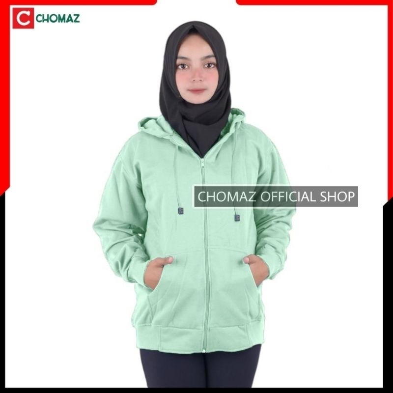 Detail Jaket Fleece Resleting Hoodie Polos Zipper Mint Pria & Wanita Size L XL XXL Chomaz