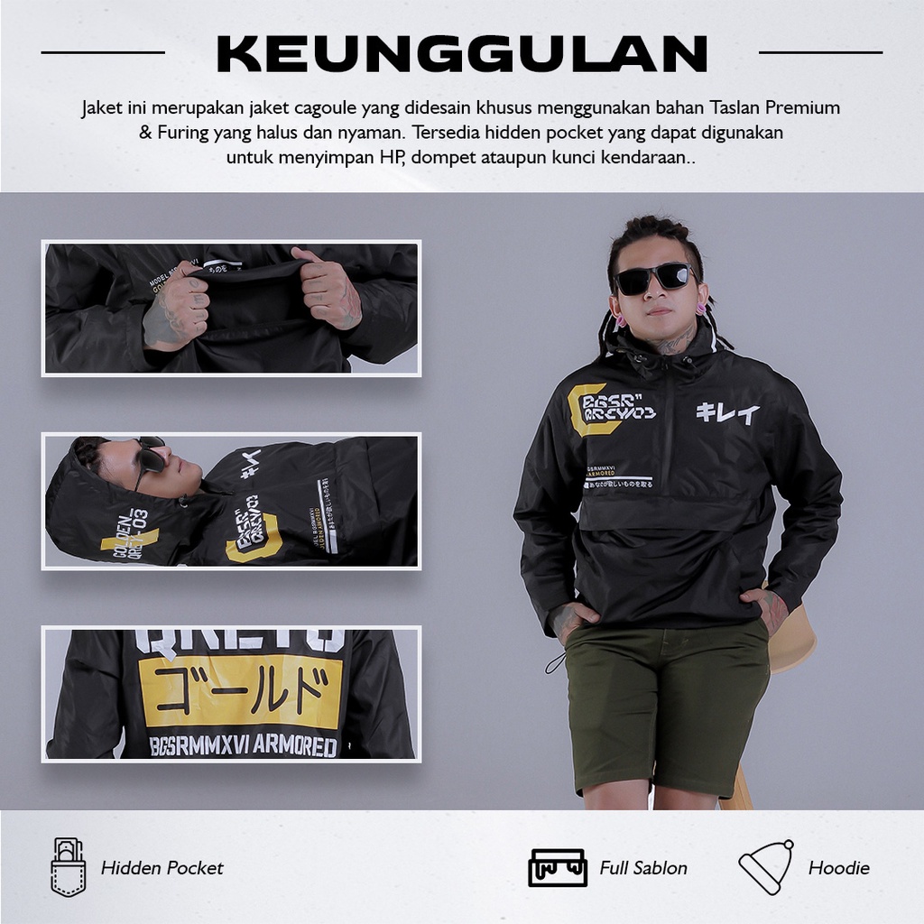 SPESIFIKASI PRODUK Model : Cagoule Merk : BGSR Bahan : Taslan premium Warna : Sesuai Gambar (Real Pict)