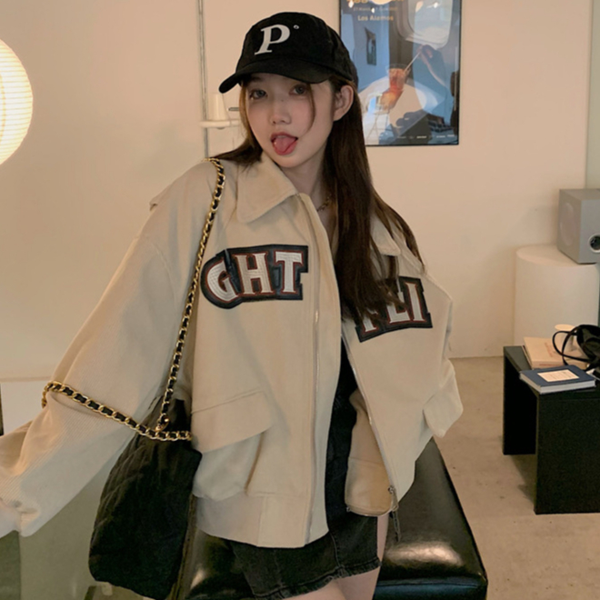 Video perkenalan produk jaket korduroi pendek retro wanita loose casual import korean style jaket hitam baseball wanita. Sumber: Shopee.