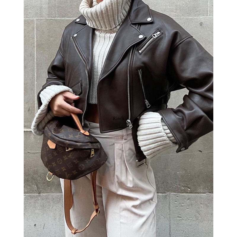 Detail Jaket kulit wanita crop leather jacket ramones berbelt