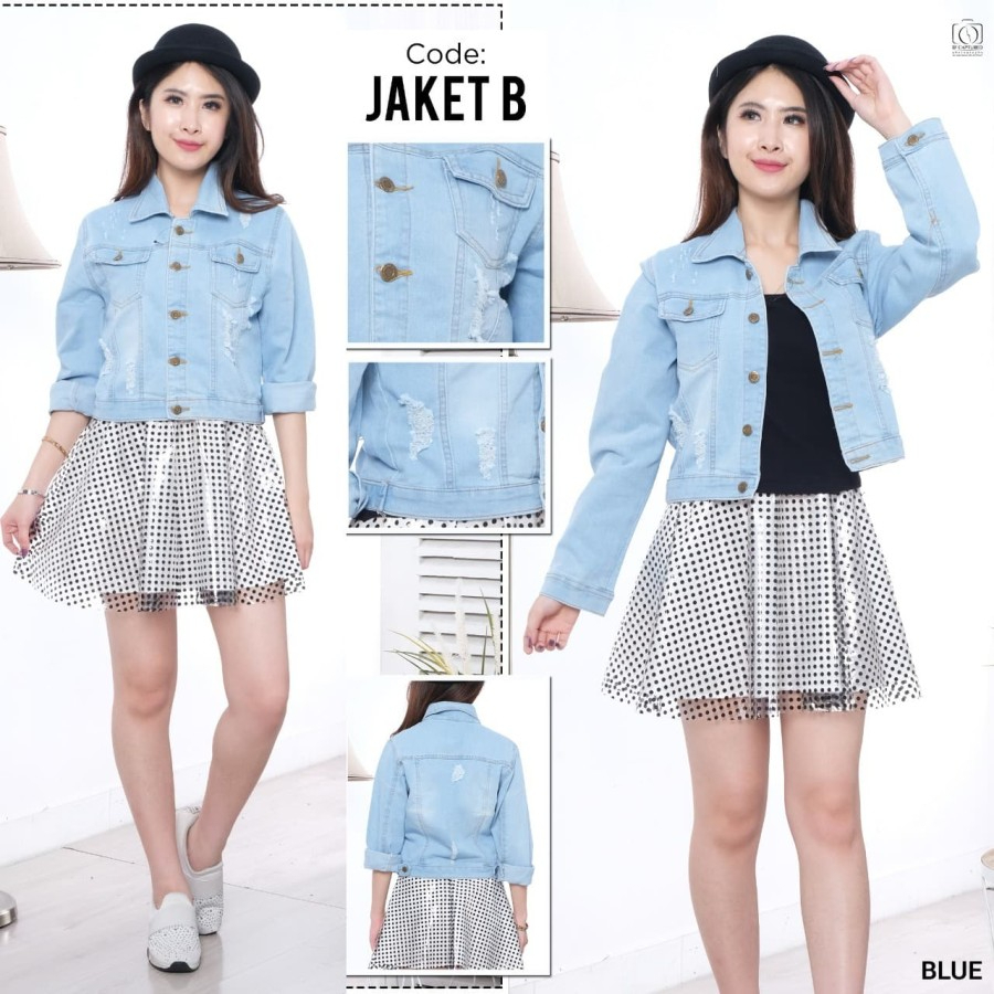 Pakaian Wanita > Denim > Outer Denim > [Jaket LaLa RO]Jaket wanita stret Dark AND Soft Blue