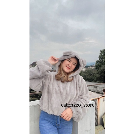 Detail JAKET OVERSIZE SHERPA BEAR WANITA HOODIE CROOPED PREMIUM