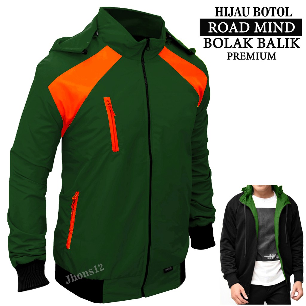 Detail JAKET PARASUT BOLAK BALIK 2IN1 ROAD MIND PREMIUM ABU MUDA PARASIT JAKET MOTOR PRIA WANITA M L XL XXL