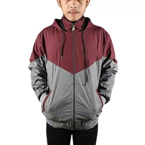 Pakaian Pria > Jaket, Mantel, & Rompi > Jaket > Jaket Parasut Kombinasi Maroon Abu