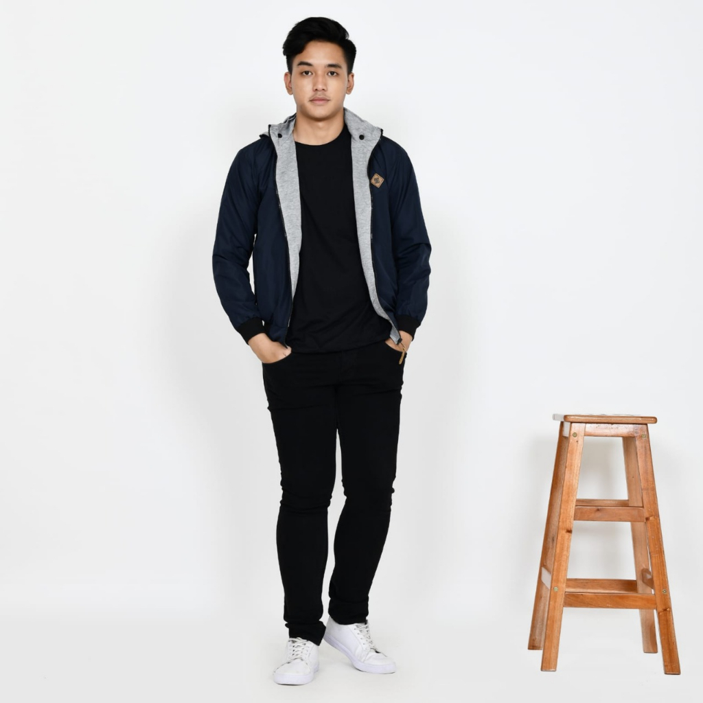 Detail Jaket Parasut Pria Wanita Warna Navy Blue Bolak Balik Bb Dc 2 In 1 Anti Air Size L - XL - XXL