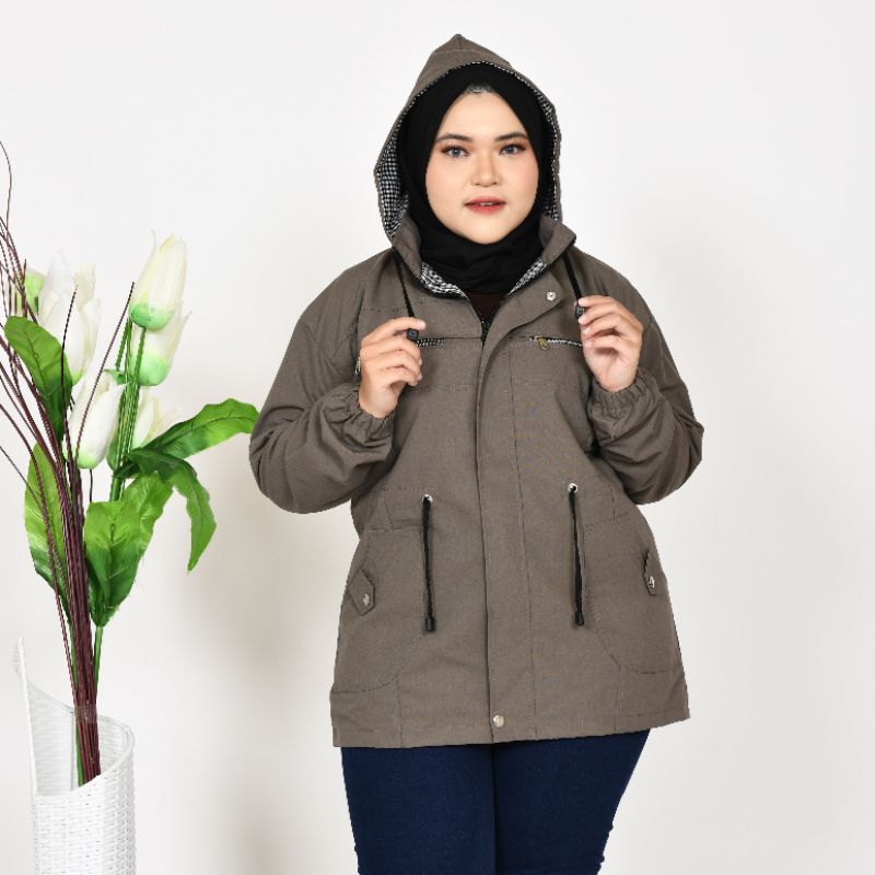 Detail Jaket Parka Wanita Jumbo Korean Style Bolak balik Terbaru Size M L XL XXL 3XL 4XL