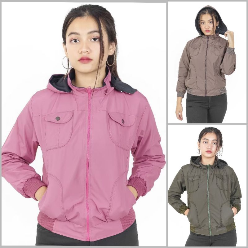 Ready Jaket Polos Wanita/Cewek Pocket Simple | Jaket Harian Modis Kekinian Premium Quality! ====================================================== Material: Taslan JN Size : All size & XL
