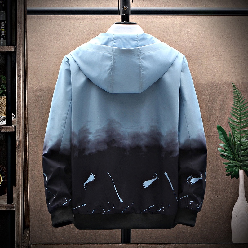 Jaket Pria Gradient Jaket Hoodie Berkerudung Kerah Bisbol Gaya Kasual Fashion Jacket J2113