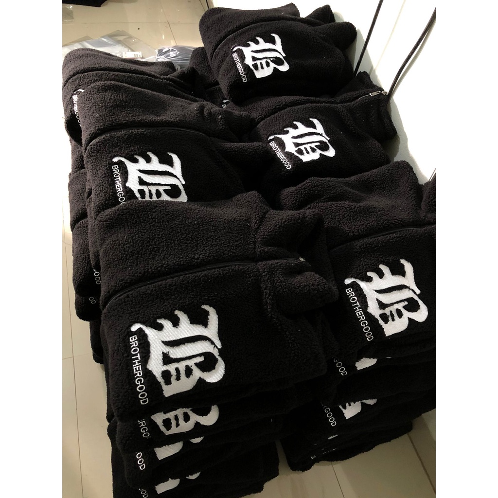 Detail Jaket Pria Sherpa BROTHERGOOD| Jacket Bulu Logo B Jacket Sherpa Black/Hitam Casual BROTHERGOOD