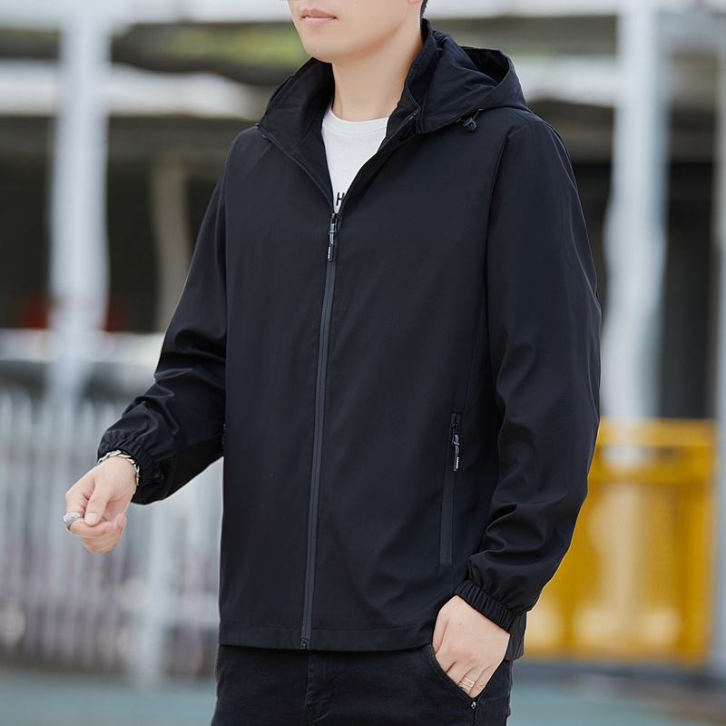 Detail Jaket Pria Waterproof Anti Angin Jaket Hoodie Motor Pembongkaran Topi Casual Outdoor Jacket J9986A