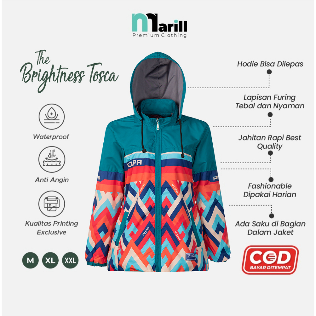 🔶 Berat : 500 Gram 🔶 1 Kg Muat 2 Jaket Jaket Printing Waterproof dibuat dari bahan parasut premium waterproof yang sangat nyaman digunakan baik ketika hang out bersama teman teman, ketika mengendarai sepeda motor ataupun ketika bersepeda santai.