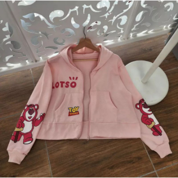 Detail Jaket Resleting Crop Lucu Dusty Pink Beruang Lotso Kekinian - Jacket Zipper Crop