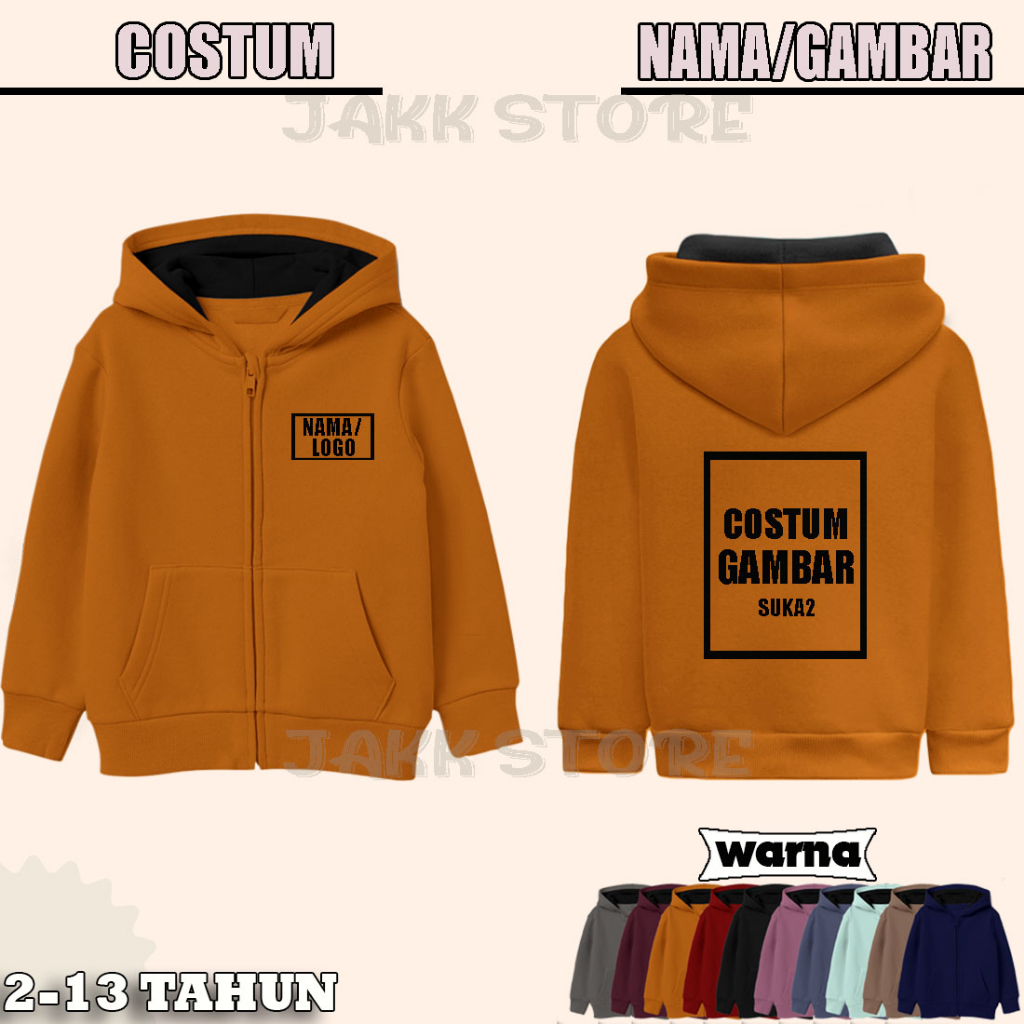 Jaket Resleting Custom Anak Laki Laki Perempuan Usia 2 3 4 5 6 7 8 9 10 11 12 13 Tahun / Sweater Hoodie Zipper Anak Terbaru