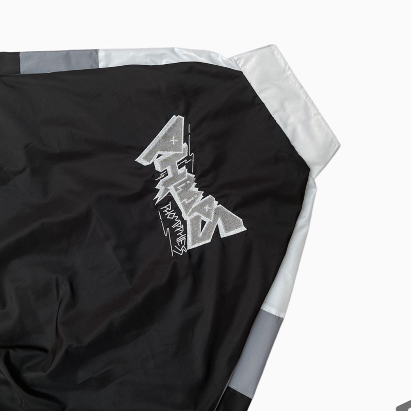 Detail PHOMPPHIESS Jaket Retro Hitam strip Maroon Jacket Sport Pria Wanita