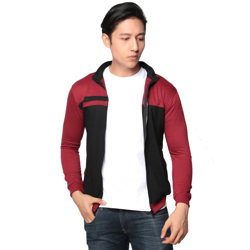 Tipe penutup jaket pakai resleting Ada 2 saku (kiri dan kanan) Lengan panjang dengan karet di pergelangan tangan