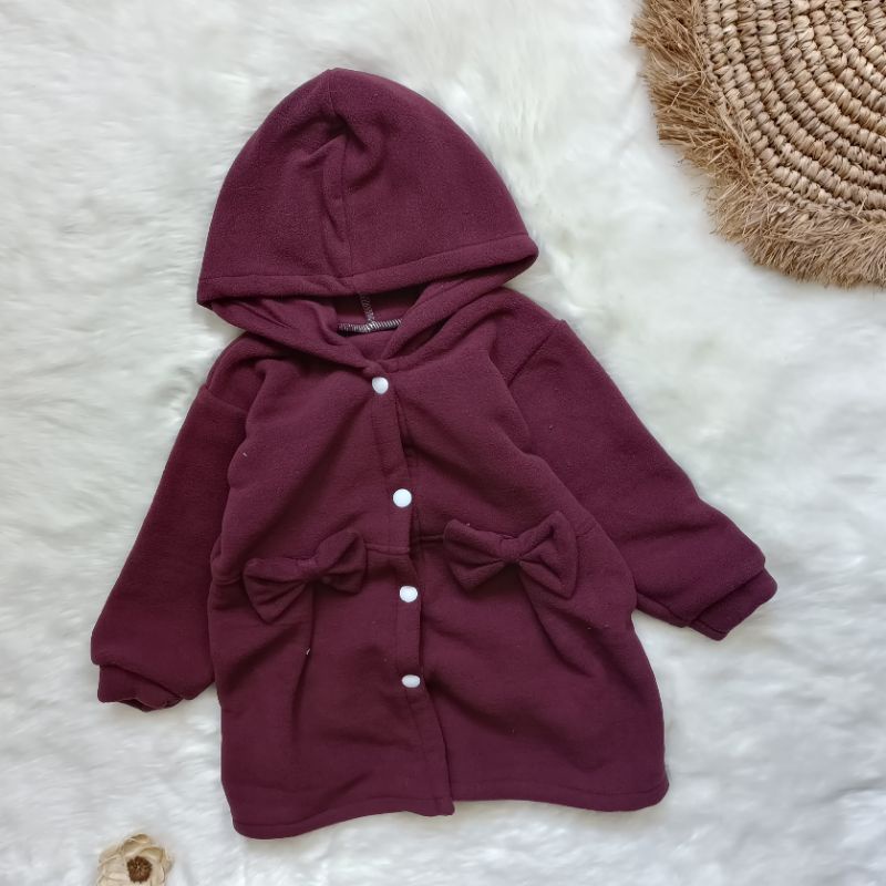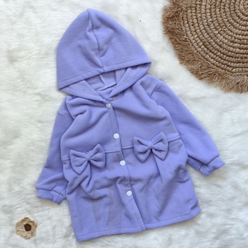 Bahan bulu emen tebal halus dan lembut hangat dan nyaman di pakai bayi tidak menyebabkan gatal/iritasi. Jaitan yg rapi , Bagian depan menggunakan kancing cetet yg bisa di lepas pasang / buka tutup sesuai keinginan ya bund , Dan juga terdapat 2 buah pita sebagai pemanis sehingga jika di pakai sikecil akan lebih terlihat sangat menggemaskan . Dilengkapi dg Hoodie jadi sangat cocok di pakai saat cuaca dingin atau ketika bepergian.