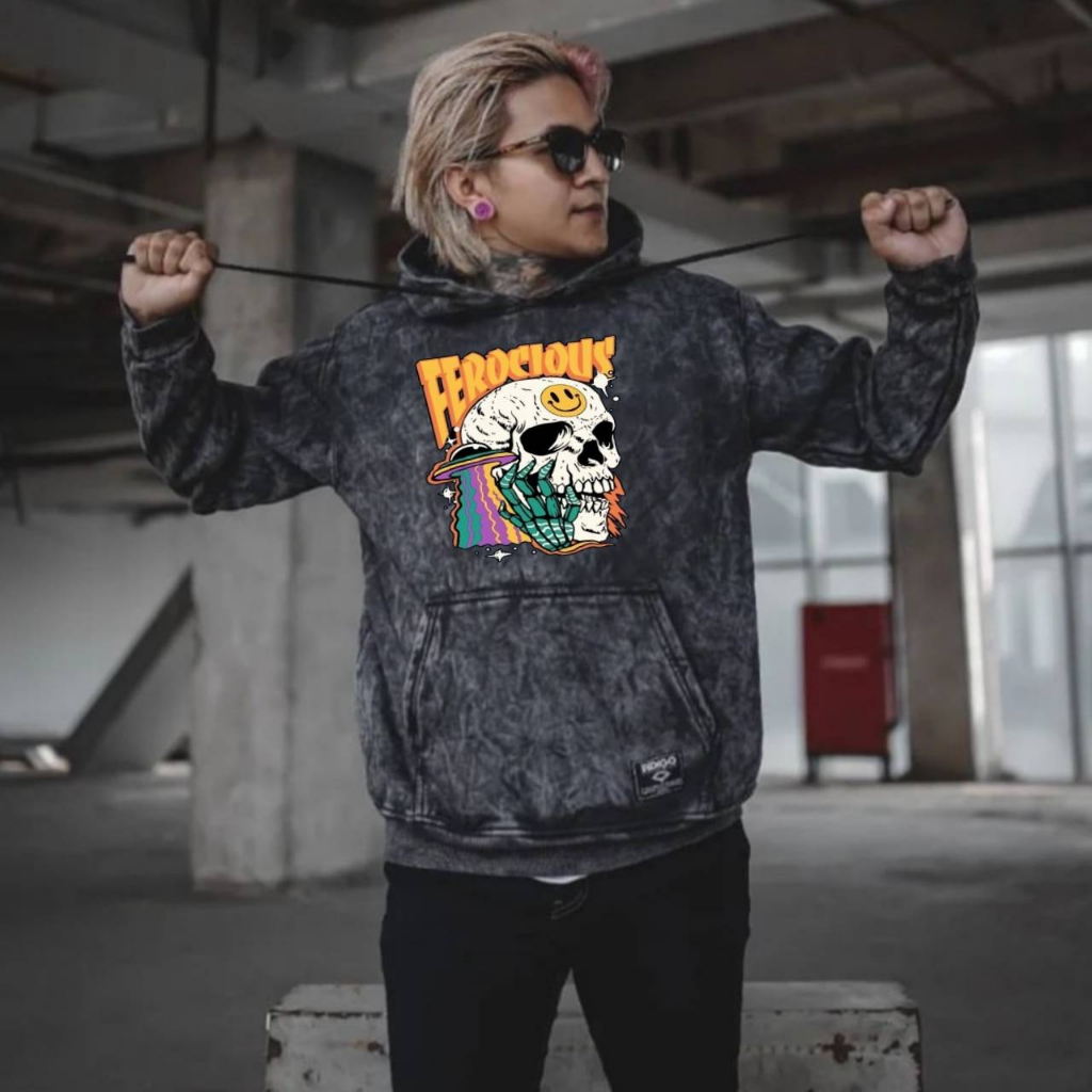 Detail Jaket Sweater Hoodie Washed Distro Motif Tulisan Metal Aesthetics | Jaket Hoodie Sandwash Pria