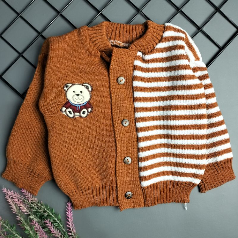jacket mantel sweater rajut bayi 0-12 bulan bear garis