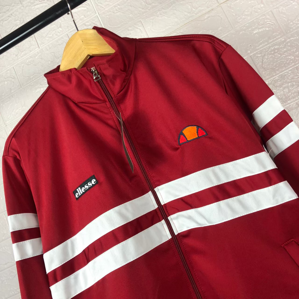 Detail Jaket Tracktop Ellesse Firebird premium pria - Merah Strep putih LOTTO DIADORA