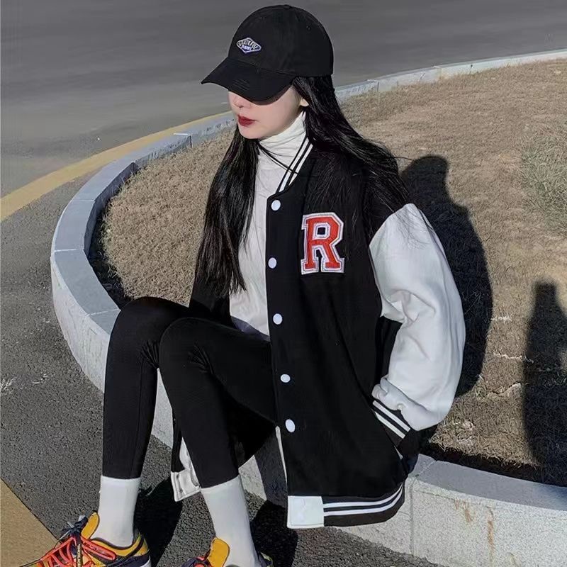 Jaket Varsity Baseball Big Size ( S - 6XL ) INISIAL R LOGO Streetwear Varsity RAYSORAN (SABLON) Jacket Bomber Korean Oversized XXL XXXL 4XL 5XL FLeece Unisex Jacket Boy Girl Pria Wanita Jumbo Mix Kombinasi 2 Warna Street Style Urban