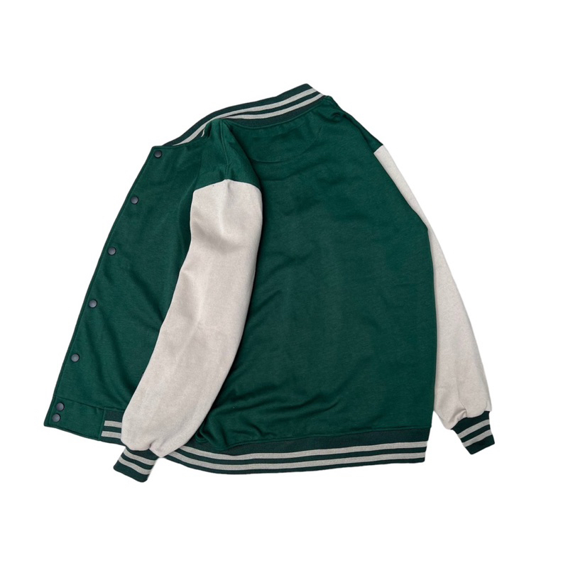 PHOMPPHIESS Jaket Varsity Polos Hijau Botol Crem Baseball Polos Pria WanitaPHOMPPHIESS Jaket Varsity Polos Hijau Botol Crem Baseball Polos Pria WanitaPHOMPPHIESS Jaket Varsity Polos Hijau Botol Crem Baseball Polos Pria Wanita