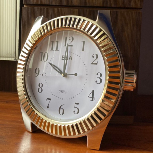 halloo guyss kita readykan jam dinding super unik nihh jadi bentuknya kek jam tangan gitu ya tapi besarrrrr bangett unik bnaget nihh apalagi di pajang di ruang tamu kalian pasti lebih cakep nihh keliatan mewah banget ya jadi warnanya kek silver agak gold gitu yaa cantik deh oh iya jam ini memakai MESIN SWEEP ya jadi nggak berisik