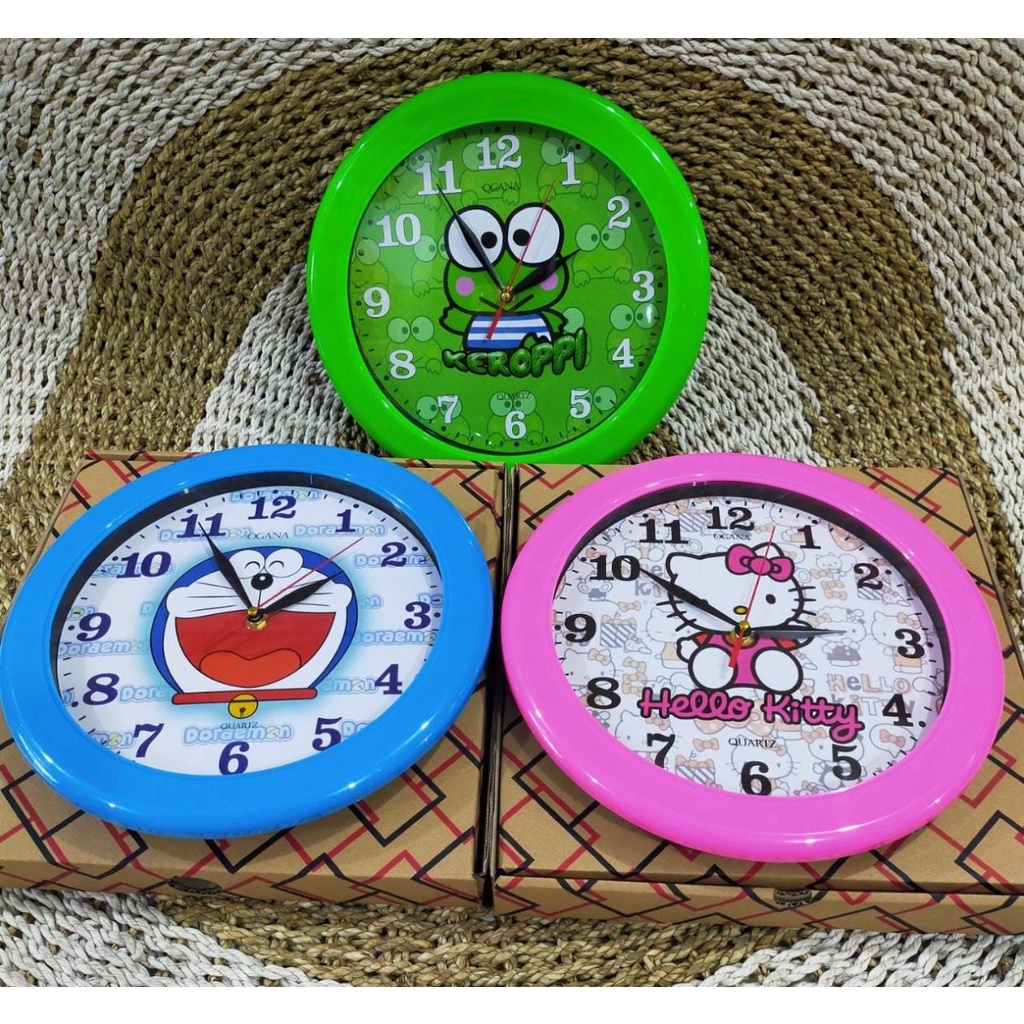 Jam Dinding dengan Gambar Banyak karakter Doraemon, Hello Kity, Keropi, Kaligrafi Diameter 25cm