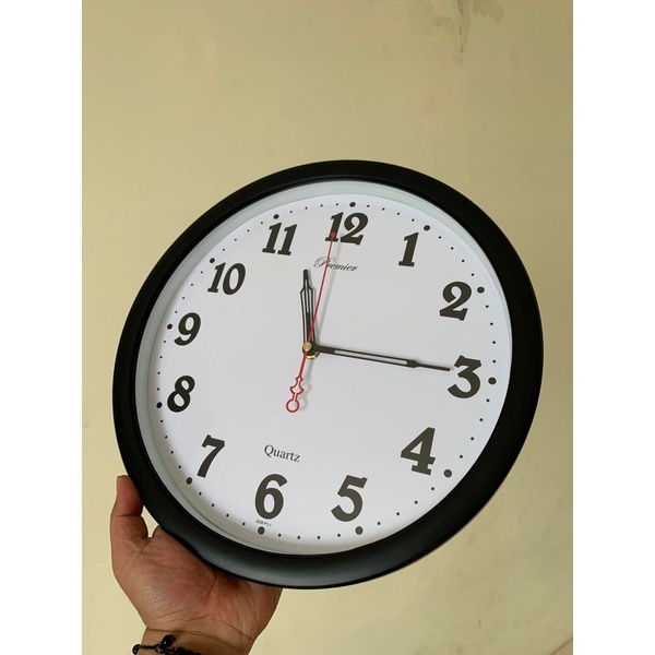 Jam dinding Premier 038 original Warna hitam angka hitam dial putih tampil keren poooll deh