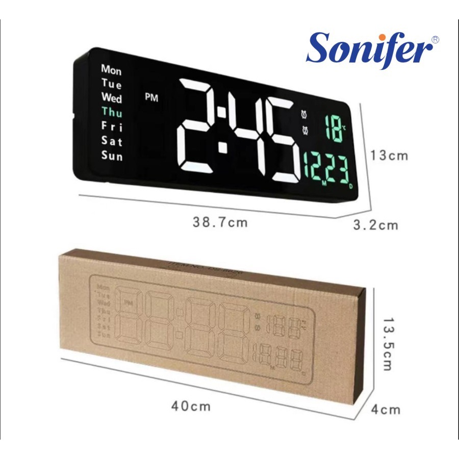 Jam Dinding Digital SONIFER ini serbaguna bisa berfungsi sebagai TIMER / STOPWATCH (Hitung waktu maju) dan juga bisa berfungsi sebagai COUNTDOWN (Hitung waktu mundur). Dengan fungsi pengatur waktu naik/turun, hingga 99 menit 99 detik serta Bisa Set Alarm Sampai 2 Kali dalam sehari. Ada juga fitur 12/24 Hour nya.