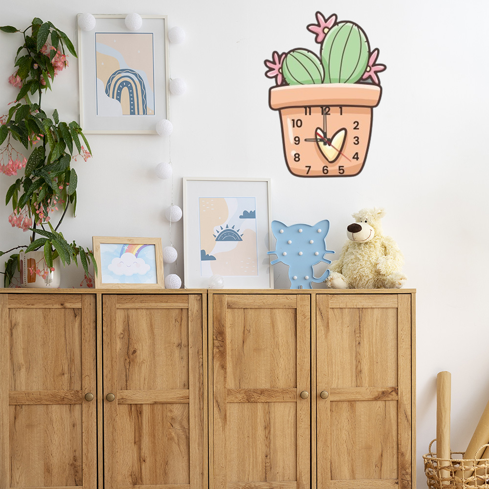 Detail Jam Dinding Unik dan Lucu Motif Kaktus Untuk Hiasan Pajangan Dekorasi Rumah Kamar
