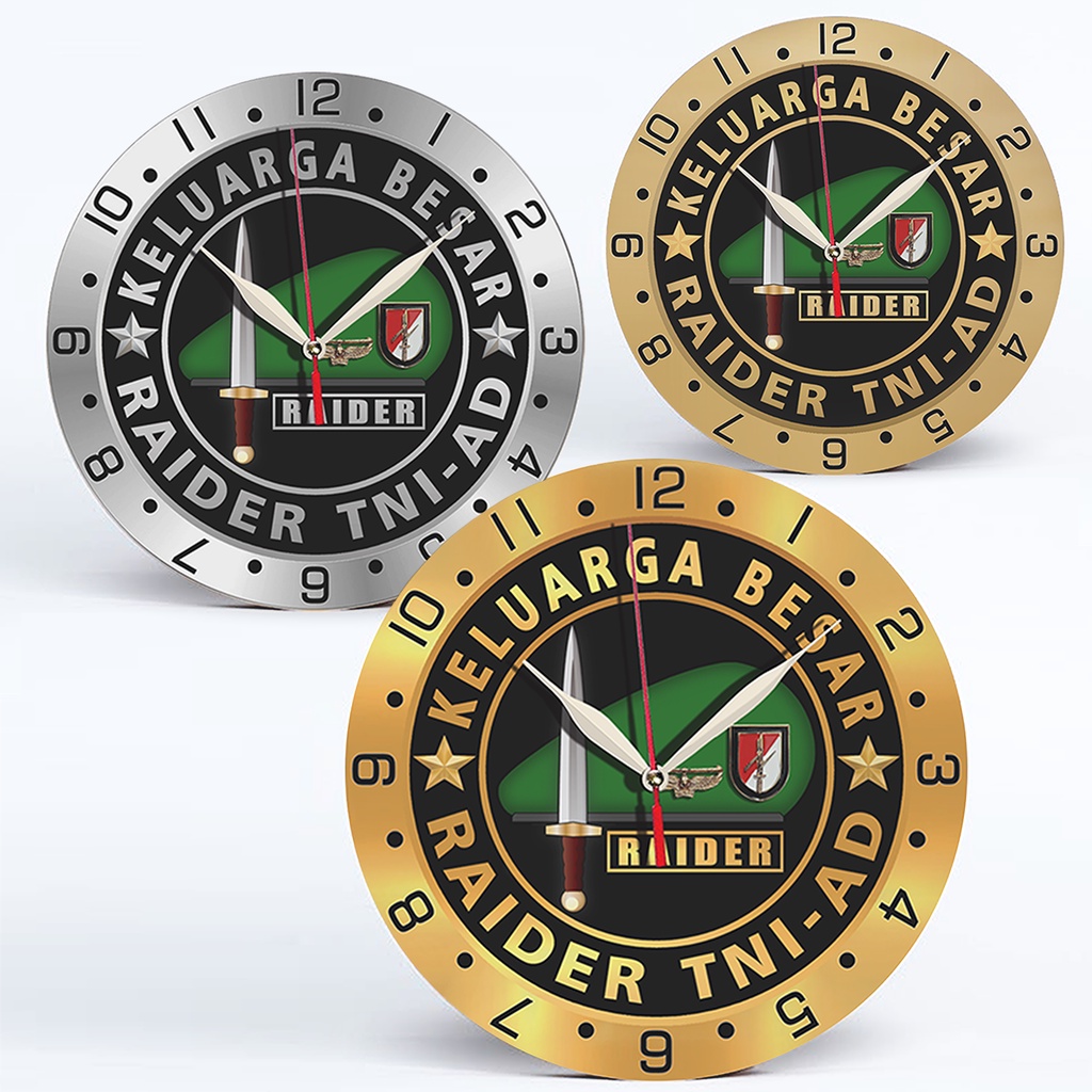 Detail Jam Dinding Unik Keluarga Besar Raider TNI-AD - Kayu Karakter D30cm (Special Edition)