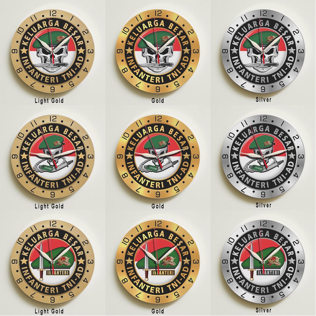 Detail Jam Dinding Unik Keluarga Besar Infanteri TNI-AD - Kayu Karakter D30cm (Special Edition)
