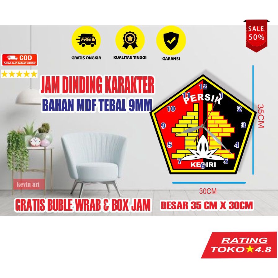 • Jam dinding kayu/karakter/unik/anime/kartun/logo/custom/besar/nyala/jumbo • Gambar / karakter lain bisa custom • Bahan dasar kayu MDF PREMIUM • Material gambar sticker HD dengan laminasi glossy (tampak jernih, warna cerah, anti air dan anti luntur) • Ukuran 35cm x 30cm tebal 9mm(lebih besar dari jam normal) • Produk HANDMADE, produksi sendiri semua produk selalu READY STOCK • Desain unik dan langka (dipotong sesuai bentuk karakter jam) • Hasil lebih rapi dan maximal (dipotong menggunakan mesin cutting ukir kayu) • Menggunakan mesin jam detak (kwalitas terbaik) • Sudah ada pengaitnya, tinggal pasang di dinding • Terdapat cover pelindung(sehingga ,mesin jam aman saat pengiriman) • FREE sticker random, buble wrap dan box jam • (Baterai dijual terpisah) jangan lupa tambahkan baterai sebelum cekout kakak • GARANSI PRODUK 1 BULAN