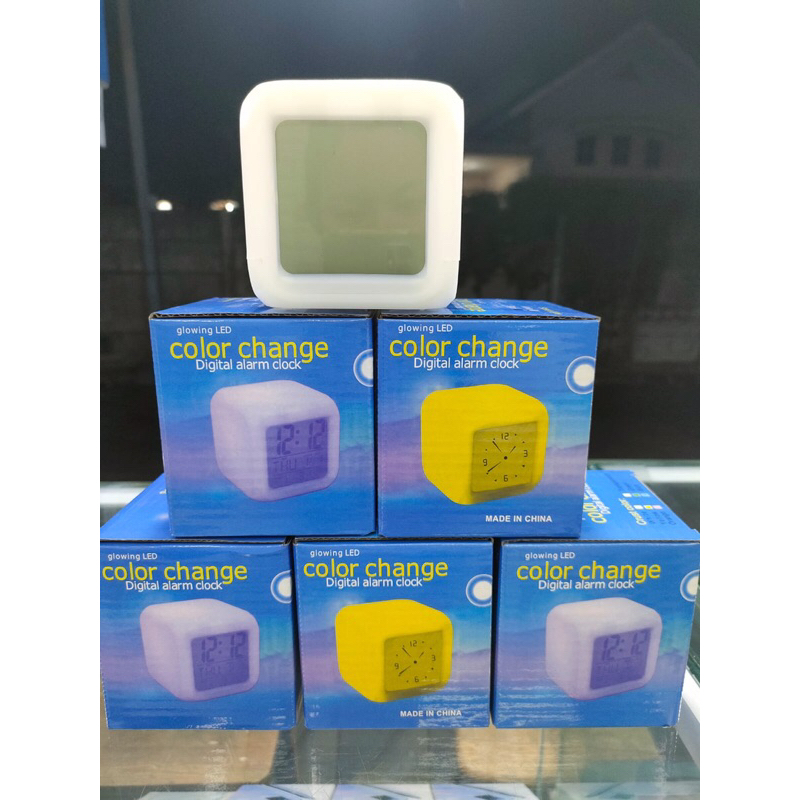 Jam weker alarm Moody Clock Kubus Berubah 7 Warna Pengukur suhu
