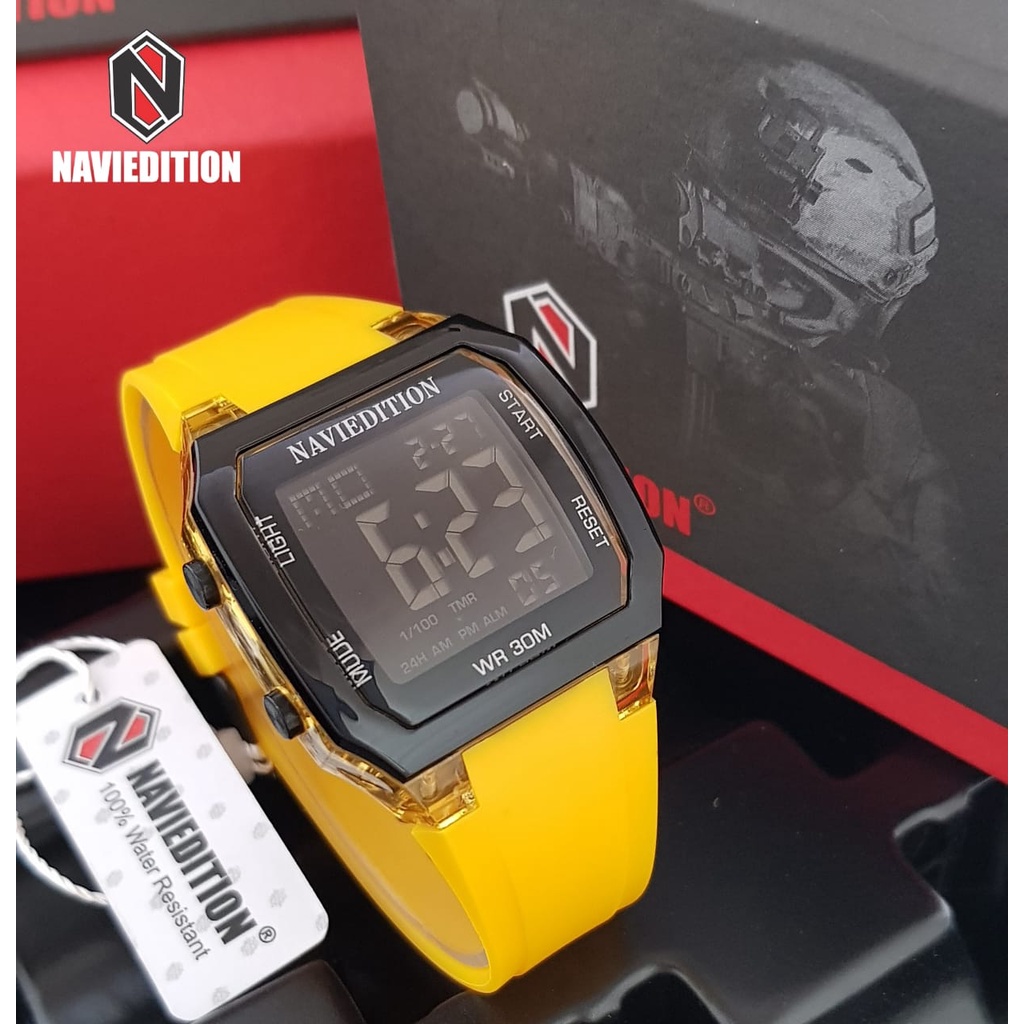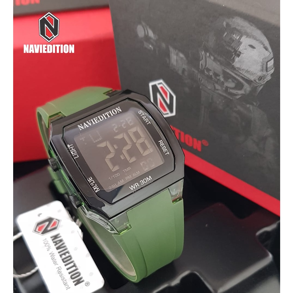 RINCIAN PRODUK MEREK: NAVIEDITION TYPE: 2225 MODEL: MODIS, ELEGAN, SANTAI, FASHIONABLE, MEWAH, OLAHRAGA QUALITY: 100%ORI GENDER: JAM PRIA/WANITA QUARTZ MOVEMENT: BATERAI BAHAN TALI: RUBBER BAHAN CASE: RUBBER DIGITAL : AKTIF TANGGAL : AKTIF HARI : AKTIF ALARM : AKTIF STOPWATCH : AKTIF LIGHT : AKTIF BULAN : AKTIF DIAMETER CASE : 40MM KETEBALAN CASE : 10MM WATER RESISTANT : 10 BAR