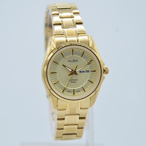 AN8018X1 L/G Ladies' Dial Champagne patterned dial Hand Hour, minute, second Date Day, date Water Resistant 50m water resistant Material Stainless steel case and screw case back Band Stainless steel side wrapped bracelet Glass Sapphire crystal Case Size 30mm