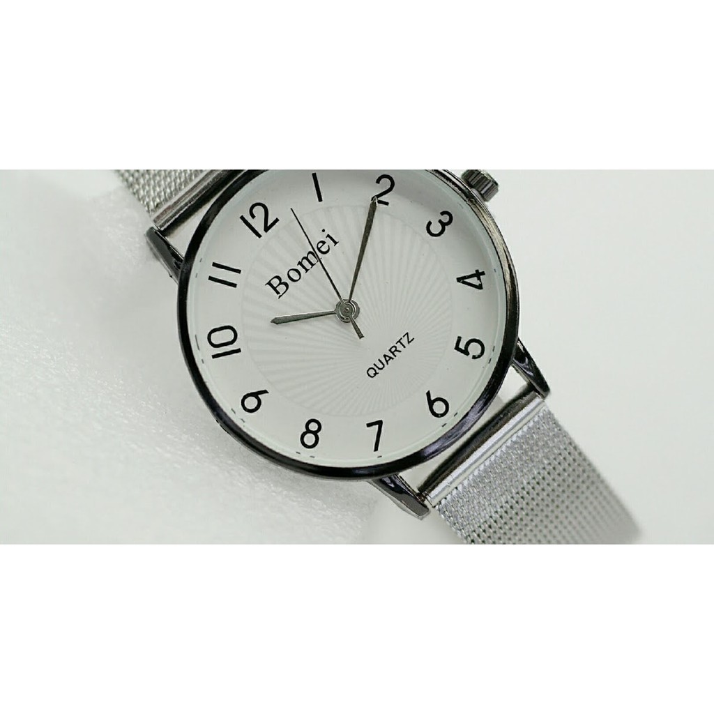 Spesifikasi : Jam Tangan Bomei Diameter 4.2CM Body Case Steinless Bahan Strap/Tali Steinless Display Analog Gaya: tenang Pergerakan: Quartz Bentuk: bulat Mode tampilan: tipe pointer Kondisi: baru
