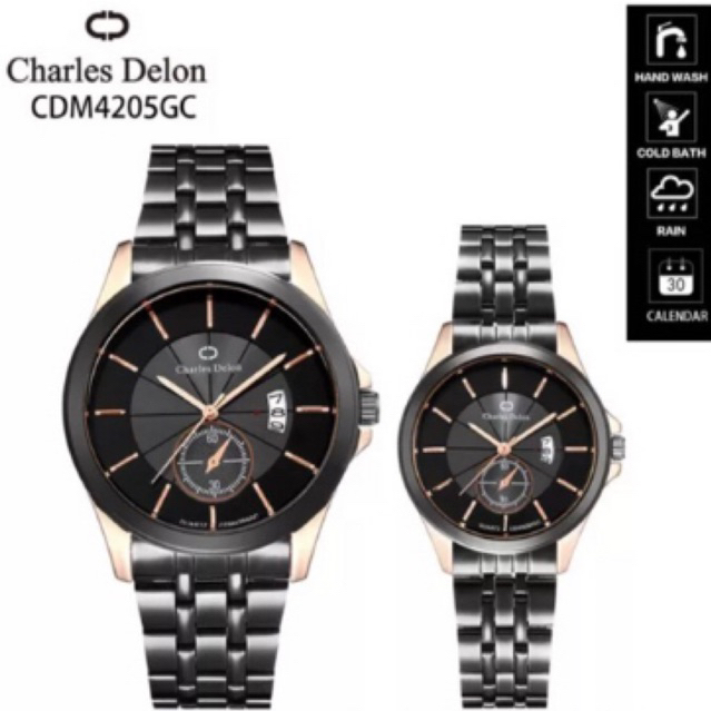 Detail jam tangan charles delon couple rantai TGL aktif original anti air