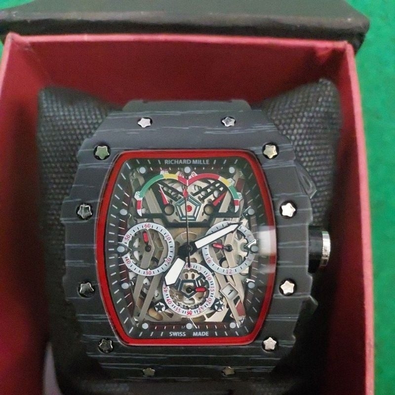 Jam tangan Chronograph RM Ri*c*rd M*le preloved second bekas like new clone super, normal akurat fungsional detik Sweep like otomatis reset zero dm 47mm with crown jam + box no brand