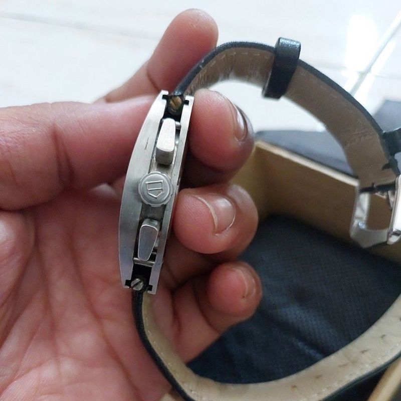 Detail jam tangan chronograph Tagg6 Heuerr preloved second bekas