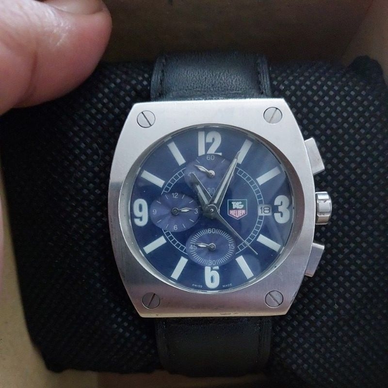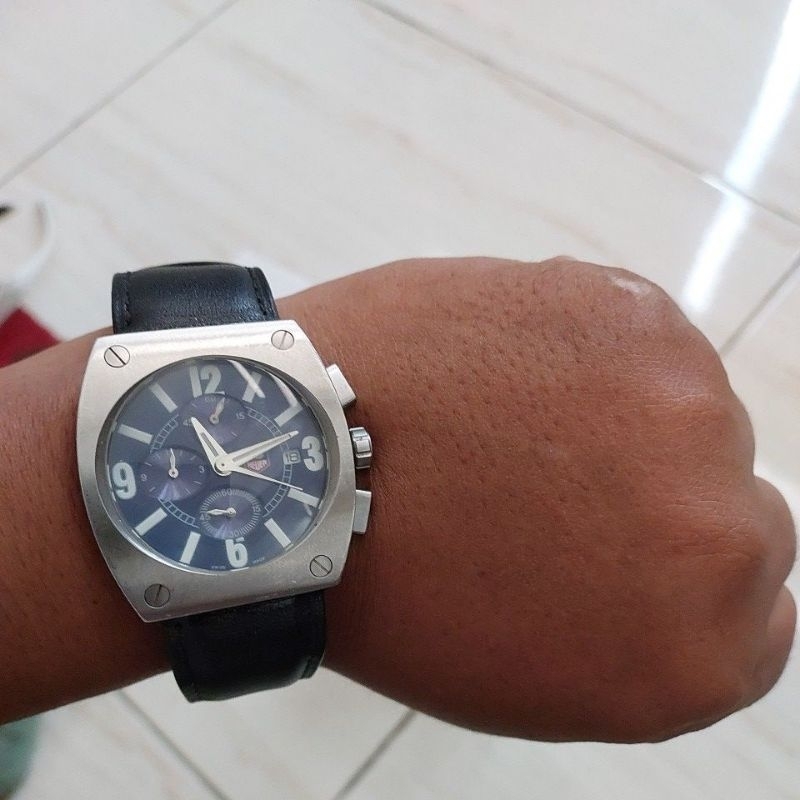 jam tangan chronograph Tagg6 Heuerr preloved second bekas Stainless steel kw mahal mesin baterai normal akurat fungsional chrono reset zero jam + box no brand Detil cek photo dan video