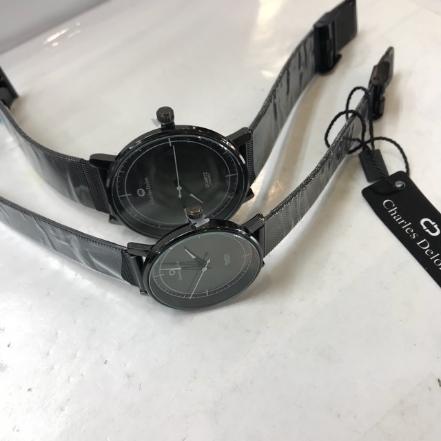 Detail JAM TANGAN COUPLE CHARLES DELON RANTAI PASIR BLACK