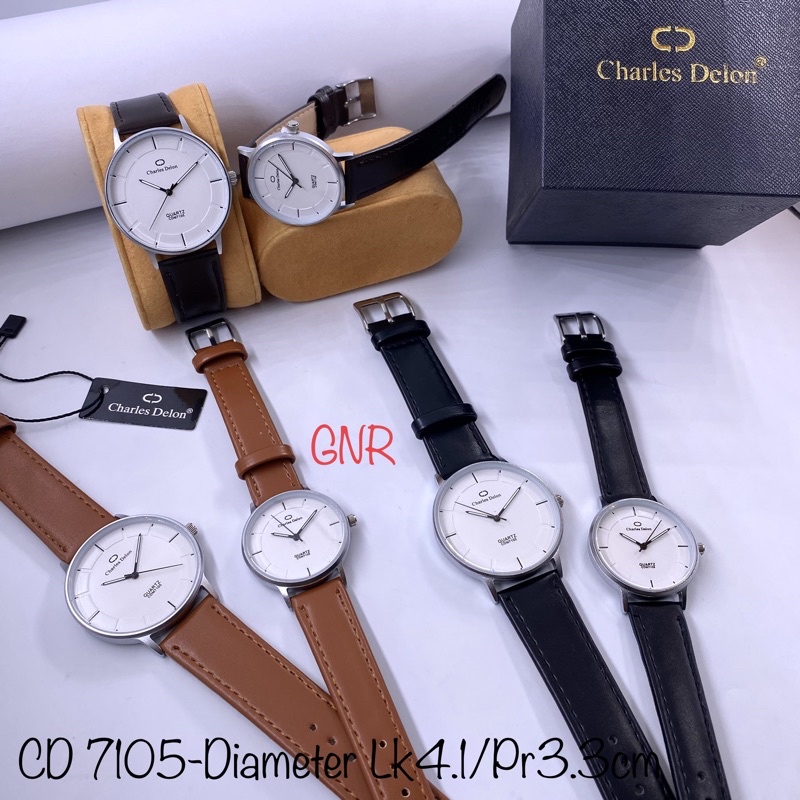 MERK : CHARLES DELON TIPE : CD 7105 GENDER : PRIA DAN WANITA BAHAN : KULIT DISPLAY : ANALOG POWER : BATERAI DIAMETER : PRIA 4.1CM,,,WANITA 3.3CM KUALITAS : ORIGINAL WATER RESIST : ( Bisa dipake buat mandi,,,ambil air wudhu,, cuci tangan,,, n kena hujan)