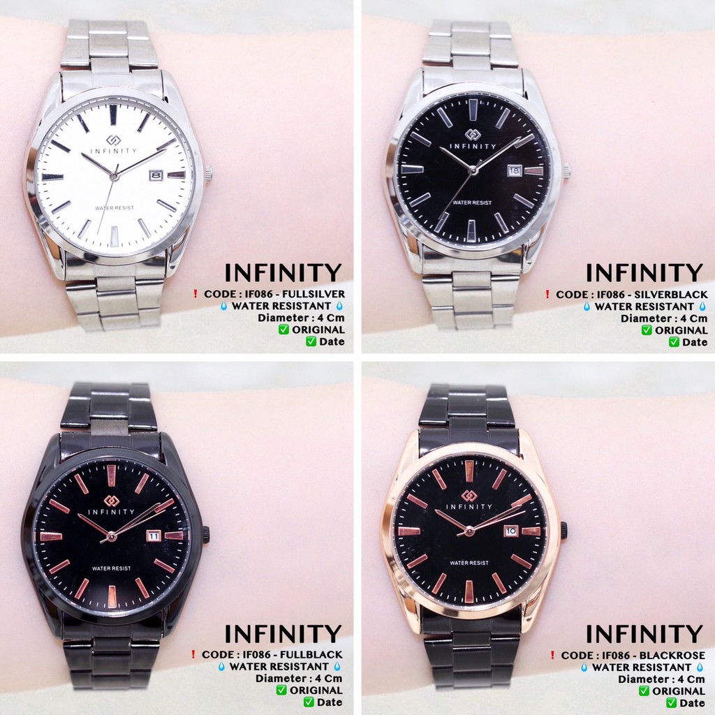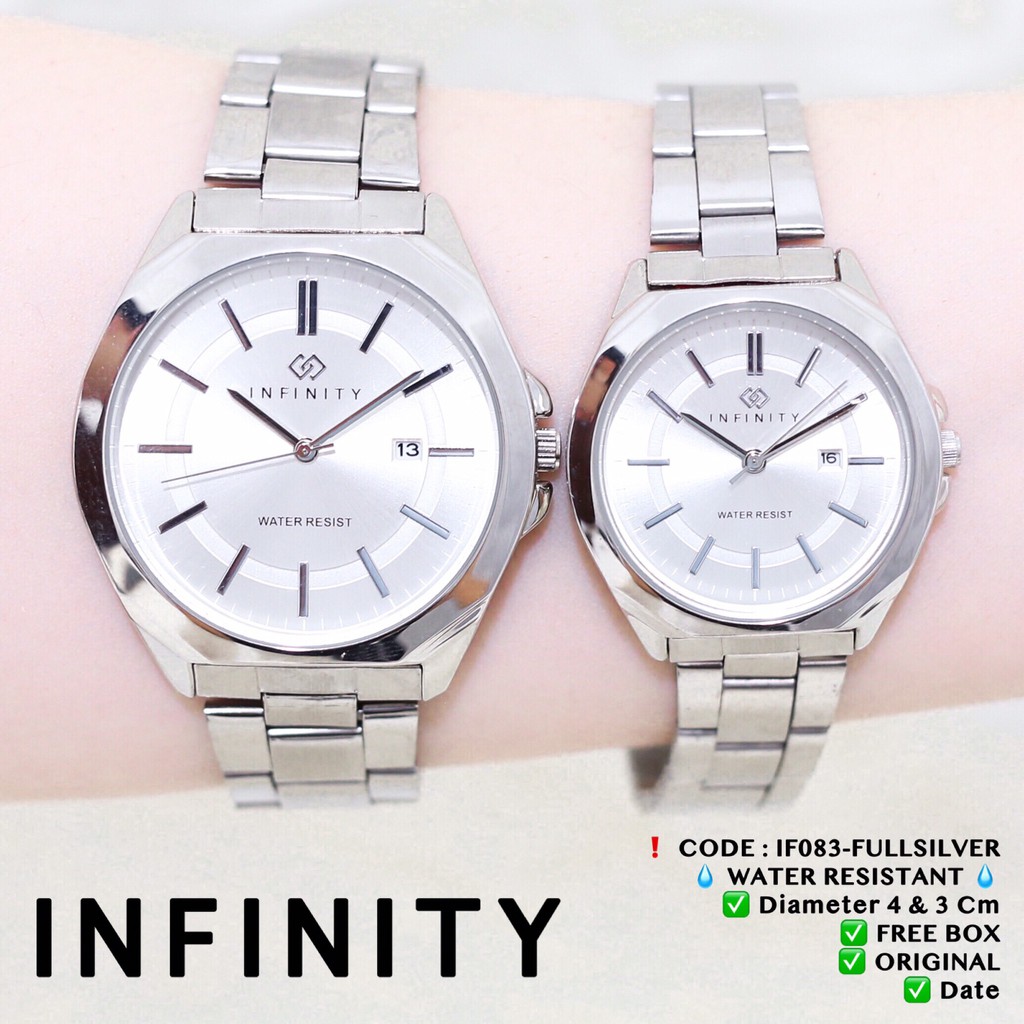 Detail Jam tangan couple rantai INFINITY pria / wanita ORIGINAL ANTI AIR tanggal aktif free box IF090 IF083