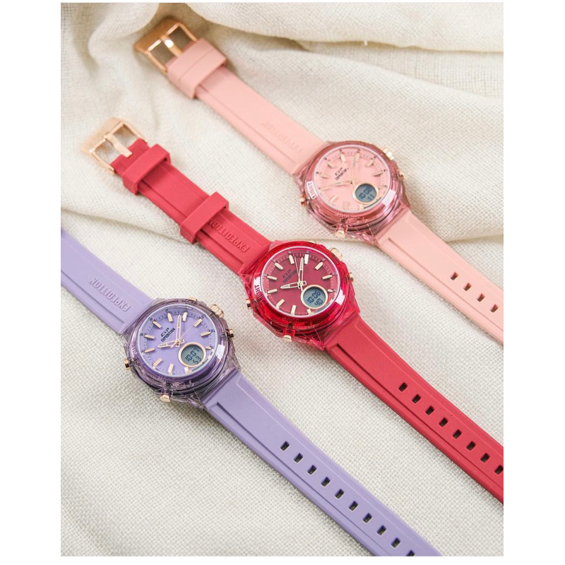 Dual time (Analog&digital) Rubber strap Mineral Cyrstal Glass Screw case back Light Date display Water resistant 30 m Case Diameter 35 mm Garansi resmi 1 tahun Inc box & warranty booklet Expedition Original