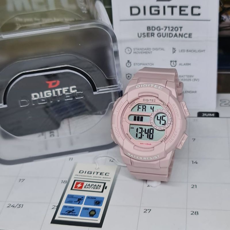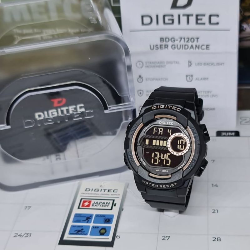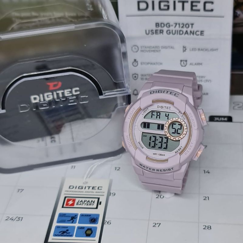 DIGITEC BDG-7120 - Jam Tangan Digital - Bahan Casing Resin - Movement : Standard Digital - El Backlight - Display Tanggal, Hari, dan Bulan - Fitur Stopwatch, Alarm, - Water Resistant 10Bar - Diameter 41mm - Ketebalan 17mm - STRAP : PU STRAP (22MM X 22MM) - Original dan Garansi Resmi 6 Bulan - Kelengkapan : Jam Tangan, Buku Garansi, Box Exclusive