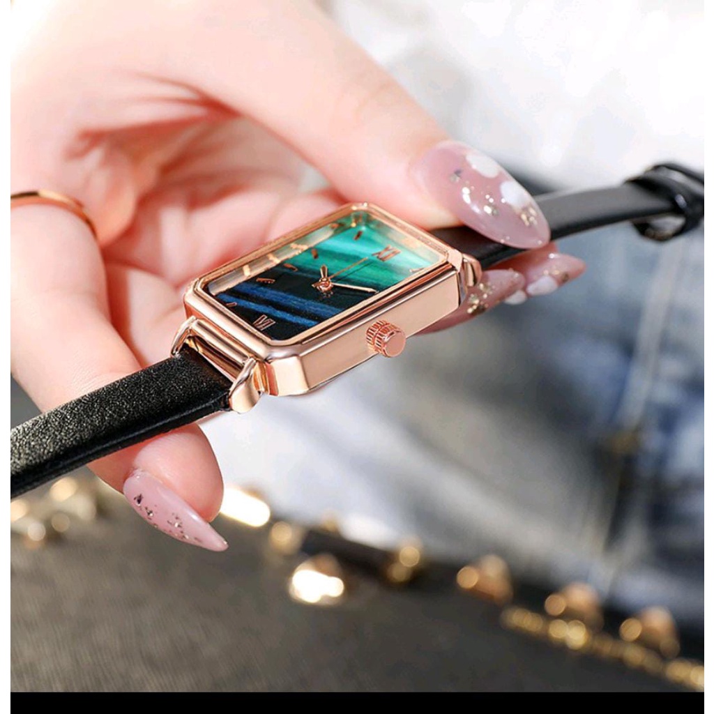 Detail Jam Tangan Kecil Wanita Dial Kotak Gradasi Analog (012PU)