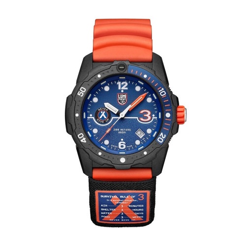 Glass Type Hardened Mineral Crystal Case material CARBONOX™ Case diameter 42 mm Strap Material Genuine rubber strap Strap Color Orange Dial color Blue Bezel Function Uni-directional rotating dive bezel Special Functions Date, Dive bezel Movement Quartz Water resistance 200 metres