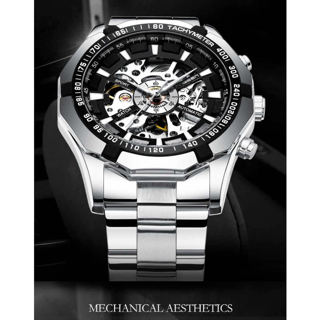 Detail JAM TANGAN ORIGINAL FNGEEN JAM061S3 IMPORT PETER PREMIUM MEKANIK AUTOMATIC ANTI AIR SILVER OTOMATIS